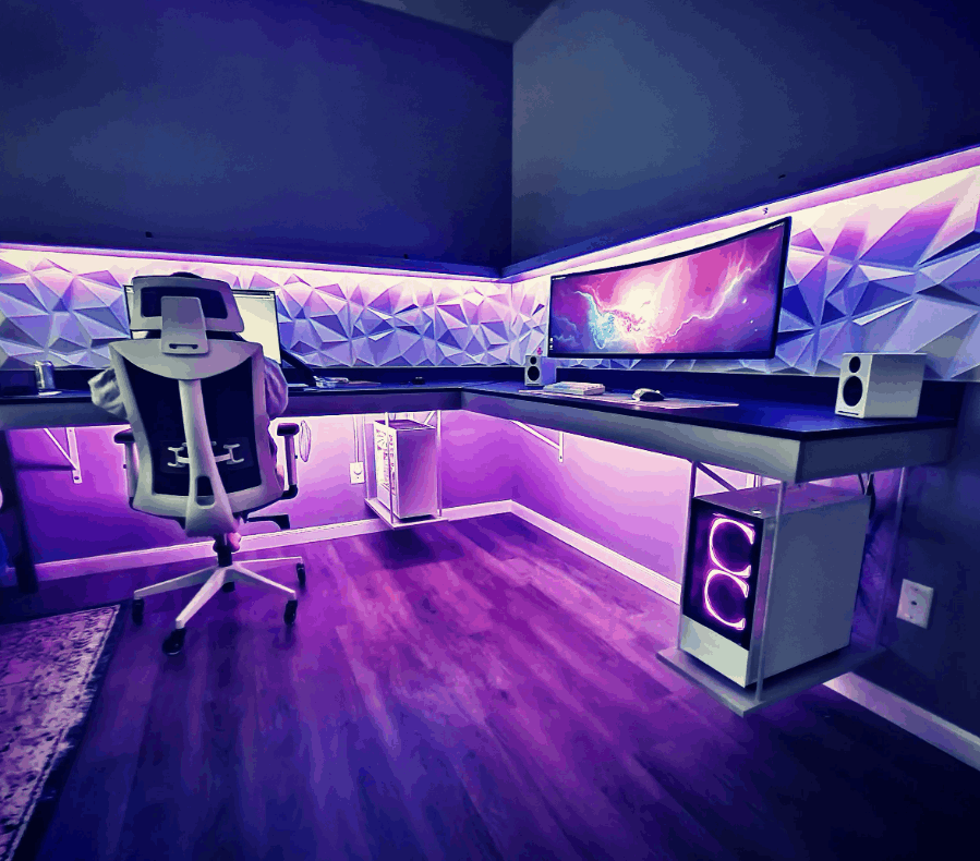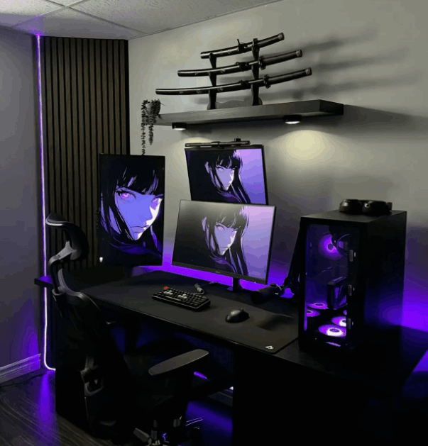 Designed to sit under or behind your monitor, this sleek neon bar adds subtle yet powerful glow to your gaming decor. It enhances the colors of nearby posters for gamers without causing glare. Ideal for compact Brazilian apartments, these minimalist neon signs deliver atmosphere and style while keeping your gaming decor clean and modern.