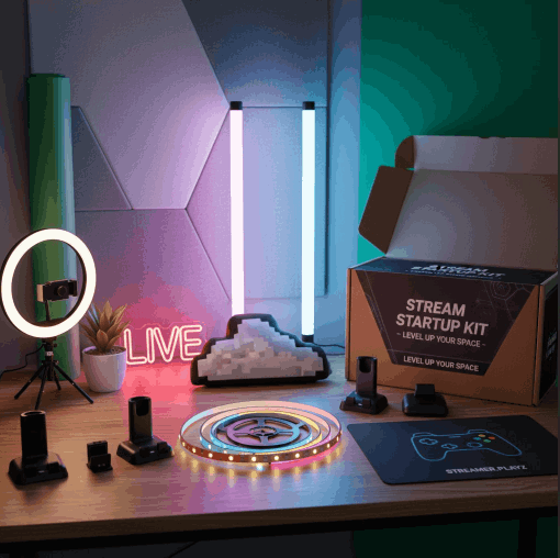 This all‑in‑one gaming decor bundle includes one custom gamer‑tag neon sign and four matching posters for gamers. Created specifically for new streamers, it simplifies building a professional background. The coordinated colors and compositions ensure your neon signs and posters for gamers look balanced on camera in any Brazilian or global space.